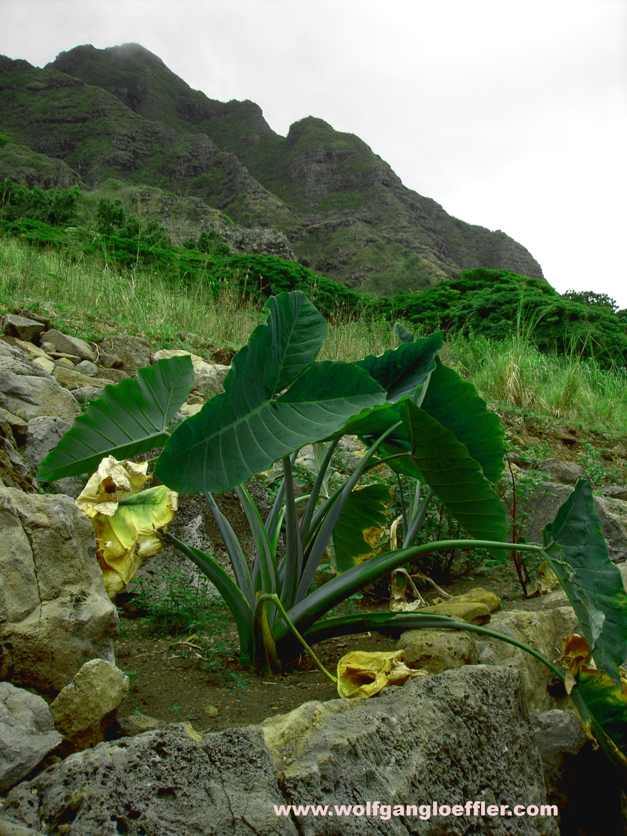Aus den Wurzeln wird ein Brei hergestellt, der Poi heißt. Dieser hat die Konsistenz von Tapetenkleister und ich finde, dass er auch so schmeckt. Die Wurzel ist aber sehr stärkehaltig und dadurch eben ein wichtiger Energielieferant. Einmal hatte ich das Vergnügen Brötchen aus Taromehl serviert zu bekommen. Die sind schön lila und schmeckten mir sehr gut. Angenehm süßlich. Taro braucht sehr viel Wasser und so schauen Tarofelder auch schon mal aus wie ein Reisfeld.