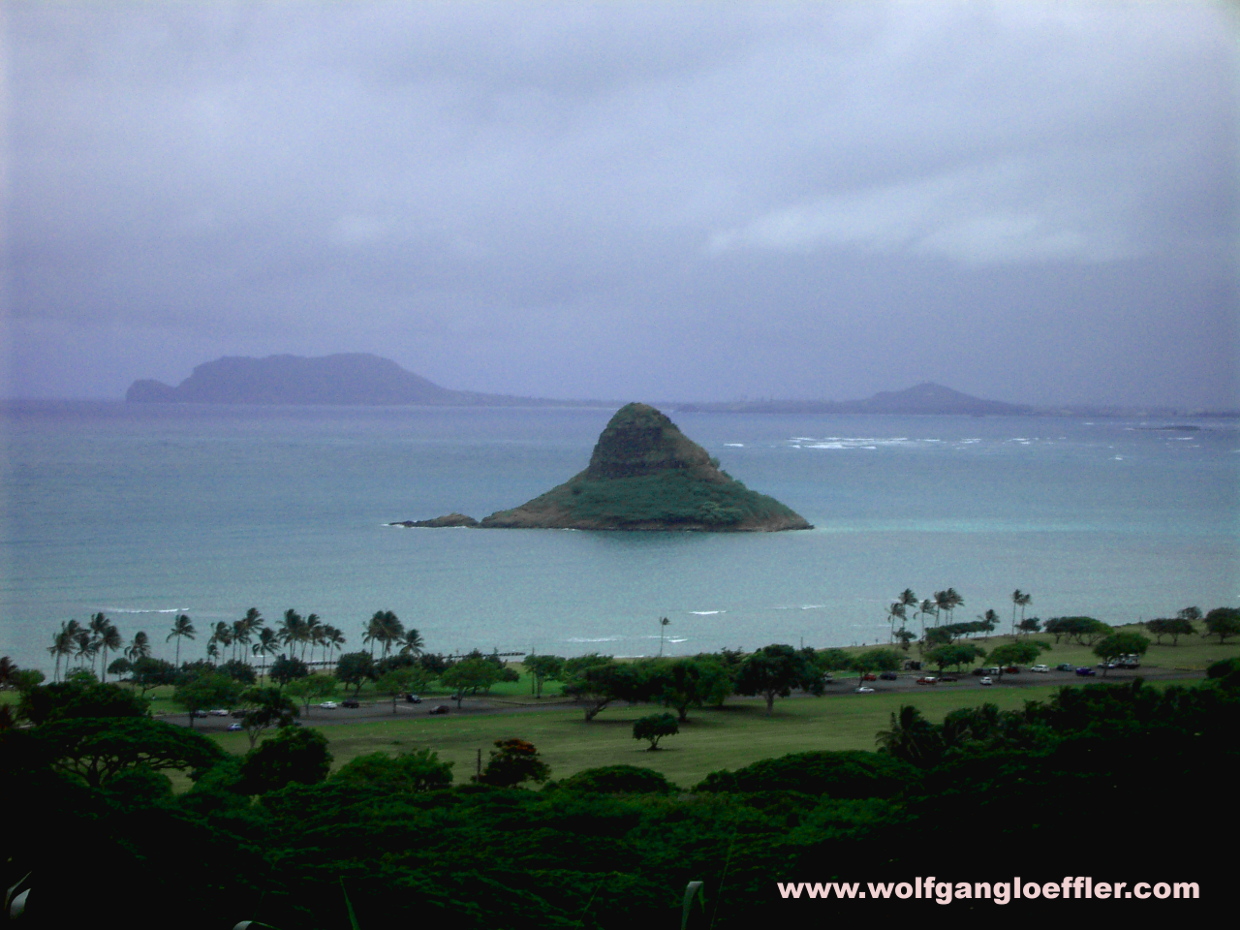 Back at Kaneohe we will turn left and continue direction north. At the end of the bay you’ll find Kualoa Ranch. The first thing you’ll see is a large building with the obvious souvenirshop and café. But you should take your time to explore the premises. They do offer a wide variety of tours, be it on the back of a horse on quads or in old buses that would fit into a museum. If you’re ready for some action you can go zip lining through the rain forest. The valley which is part of the ranch is well known to most of you through the movie Jurassic Park. This picture was being shot on Kauai in 1992 when hurricane Iniki ravaged this island. (Don’t worry Hawaii is being hit rather seldom by such monster storms.) So the crew had to find another place with unspoiled nature and rain forest. Well, that’s exactly what you get here. The tours aren’t a real bargain, but definetily worth the money.