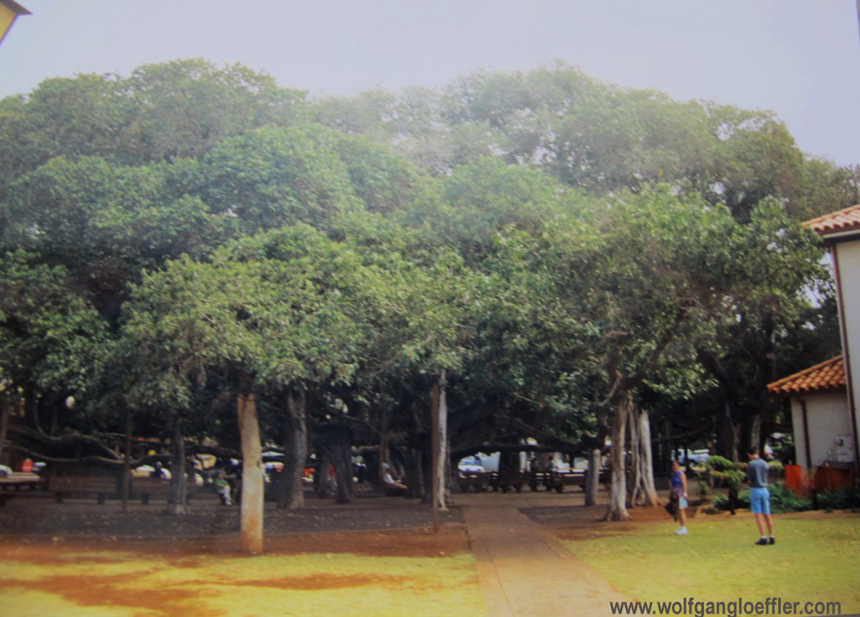 Weiter geht es durch eine kleine Straße zur Lahaina Public Library. Der Rasen vor der Bibliothek war bis in die 1950er Jahre ein großes Tarofeld. Den nächsten Stopp könnt Ihr am Hauola Stone einlegen. Dieser Stein wurde von den hawaiianischen Priestern als ein Stein mit heilender Wirkung angesehen. Weiter geht es zum ältesten Leuchtturm der Inseln. Das Pioneer Inn ist das älteste Hotel auf Maui und hat schon so illustre Gäste wie Frank Sinatra beherbergt. Der Banyan Tree (siehe Foto oben) bedeckt mit seinen Ästen eine Fläche von über 4.000m² und ist traditionell in jedem hawaiiansichen Dorf der Treffpunkt. Der in Lahaina wurde übrigens 1873 gepflanzt. Gegenüber liegt das Courthouse, hier wurde 1898 zum ersten Mal die amerikanische Flagge auf Hawaii gehisst.