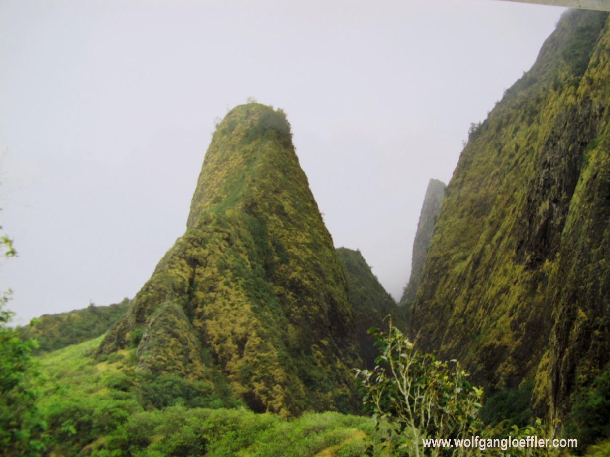 Dazu fahren wir zunächst in eines der heiligsten Täler der Inseln. Am Ende des Tals steht eines der Wahrzeichen der Insel Kuka’emoku, oder auf Englisch: die Iao Needle, ein überwachsener Monolith mit etwa 370 Metern Höhe. Nach schweren Überschwemmungen Ende 2016 ist das Tal derzeit aber für Besucher gesperrt. Eine besondere Bedeutung hat das Tal, weil hier King Kamehameha der I. die entscheidende Schlacht zur Einigung des Königreichs Hawaii geschlagen hat.