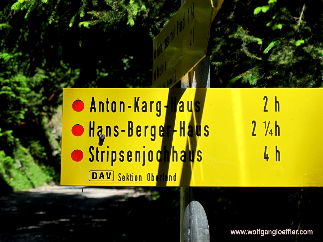 Like all perfect moments this one finds it end too and I am back on my way to the valley. It looks like my fellow hiker friends are all using the path they came up to go back down. After I take a left turn on the second sign I don’t see any other soul for quite a long while. The turn is not that easy to find since at the first turn you will have exactly the same directions. So be sure to take the turn where it says 2 hours to the Anton-Karg-Haus and not the one with the 4h on it.