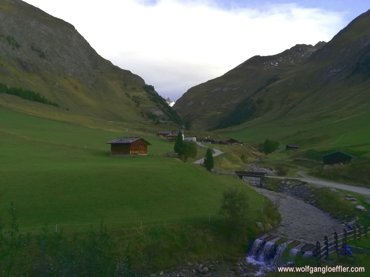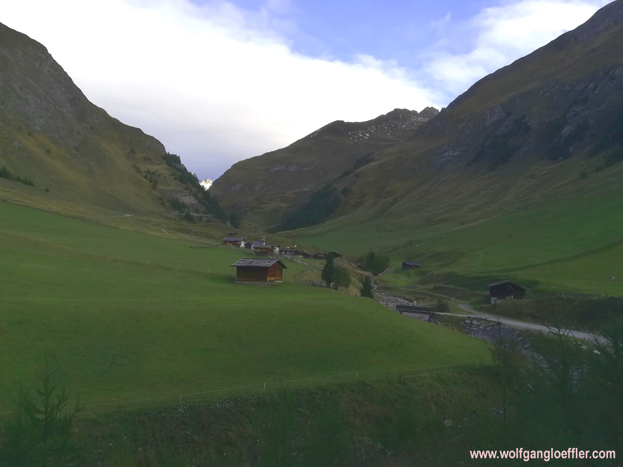 On the oppsite side we get a view of the Wurmaulspitze which is just like the Wilde Kreuzspitze covered with snow. Up to now we didn’t cross any snow but we certainly will in higher elevations. Two days ago it has been snowing heavily up here. The scenery is beautiful. It probably is even more in early summer when the pastures are in full bloom.