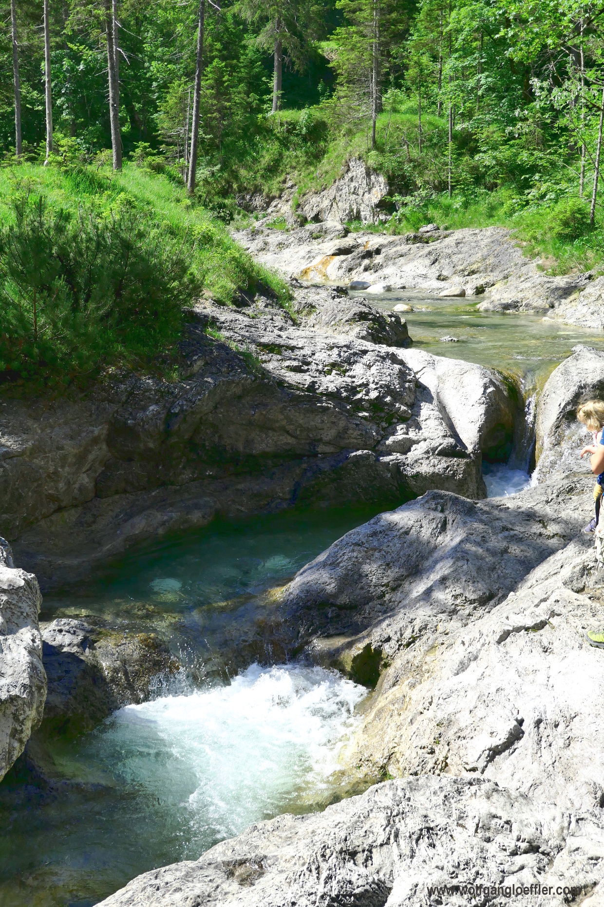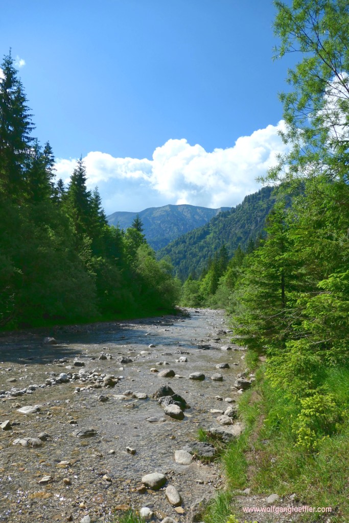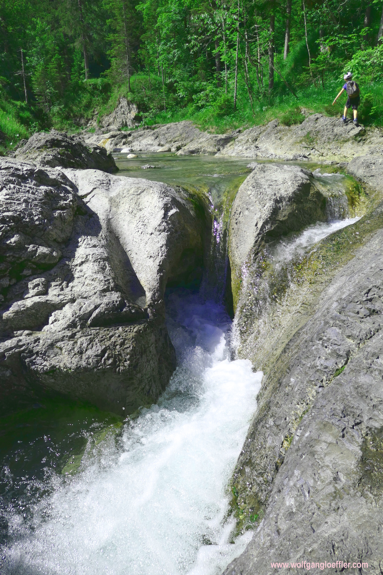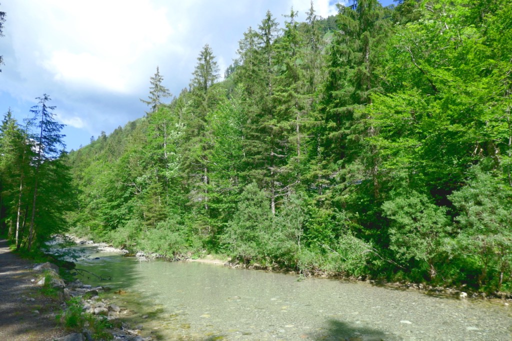 Es ist noch früh am Morgen, als ich am Wanderparkplatz in Wildbad Kreuth ankomme. Seit meinem letzten Besuch wurde hier ein Toilettenhäuschen aufgebaut. Das ist auch noch sehr sauber. Dafür zahle ich dann gerne auch die Parkgebühr. Obwohl ich an einem Wochentag hier bin, füllt sich der Parkplatz recht schnell. Ich hatte ja drauf gehofft, dass nur wenige Wanderer unterwegs sind. Aber Abstand halten geht noch ganz gut. Also beginne ich meine Tour und folge dem Wanderweg Richtung Siebenhütten. Etwa auf Höhe der Fischzucht habt ihr die Wahl zwischen einer festen Schotterpiste, oder aber einem Fußweg, der näher an der Weißach lang führt. Die Gumpen seht ihr nur, wenn ihr auf Pfad weiter geht.