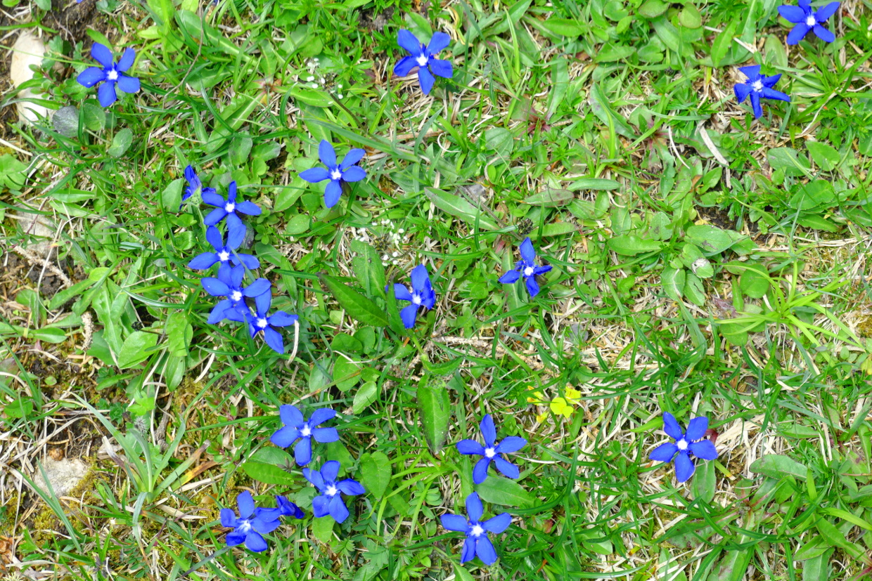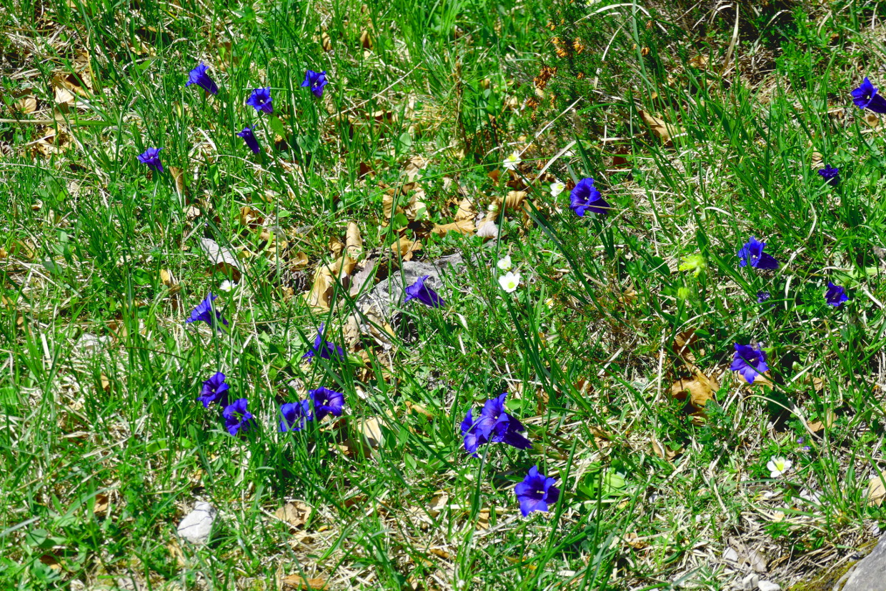 Ich genieße einen letzten Blick auf die Guffertspitze und bewundere die vielen Blumen am Wegesrand. Etwas verwundert bin ich, dass hier der Seidelbast noch blüht. Das sieht man sonst eher im März, da er eine der ersten Stauden ist, die im Frühjahr blühen. Und dann überall diese einzigartigen Enzianblüten. Ihr habt sicher schon festgestellt, dass das eine meiner Lieblingsblumen ist. Dieses tiefe Blau finde ich immer wieder faszinierend. Jetzt wäre es nicht schlecht, wenn ich an einer Hütte vorbei käme. Würde mich gerne mal ein bisschen hinsetzen und was trinken.