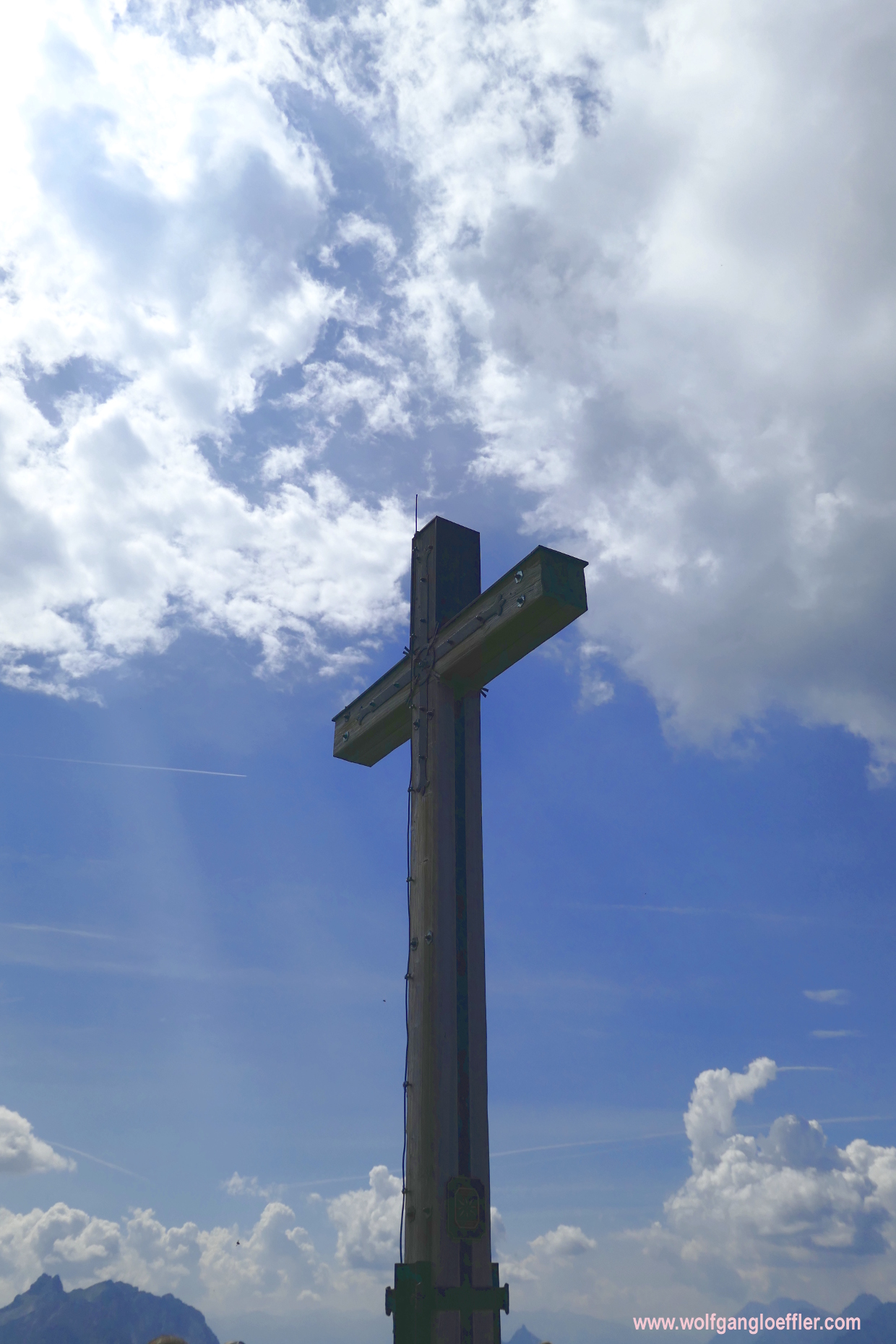 Nur wenige Menschen sind heute auf dem Gipfel. So kann ich noch ein bisschen länger sitzen bleiben. Ein Pärchen fragt mich, über welchen Weg ich aufgestiegen bin. Sie waren ein bisschen enttäuscht, weil der Weg über das Soiernhaus auf langen Strecken über Schotterstraßen führte. Das ist die Route, die ich für den Abstieg geplant habe. Ich gehe ja auch nicht gerne über diese „festbetonierten“ Schotterstraßen, aber andererseits würde ich an keiner Hütte vorbei kommen, wenn ich über den gleichen Wg wieder absteige. Da ich aber sehr durstig bin, entscheide ich mich für die von mir geplante Route. Wird schon nicht so schlimm werden.