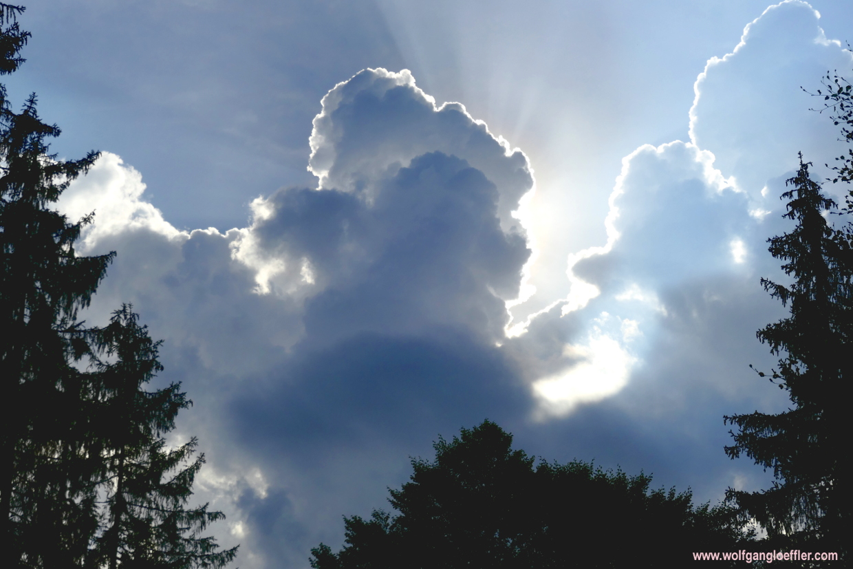 Hier an der Fischbachalm beginnt dann der Teil, den das Pärchen auf dem Gipfel nicht so mochte. Der Rest der Tour führt über eine Schotterstraße, die auch die Zufahrt zur Alm ist. Die meiste Zeit verläuft diese durch dichten Wald, da sie aber recht breit ist, ist sie auch recht sonnig. Je näher ich dem Tal komme, umso wärmer wird es. Das macht diesen „Spaziergang“ noch etwas ungemütlicher. Der Schotter heizt die Umgebung noch mehr auf. Andererseits ist es wiederum angenehm so gemütlich über diese Straße zu schlendern nach dem anstrengenden Aufstieg. Kurz bevor ich dann mein Auto erreiche taucht diese Gewitterwolke über mir auf. Also gehe ich ein bisschen schneller um noch trocken zum Auto zu kommen.