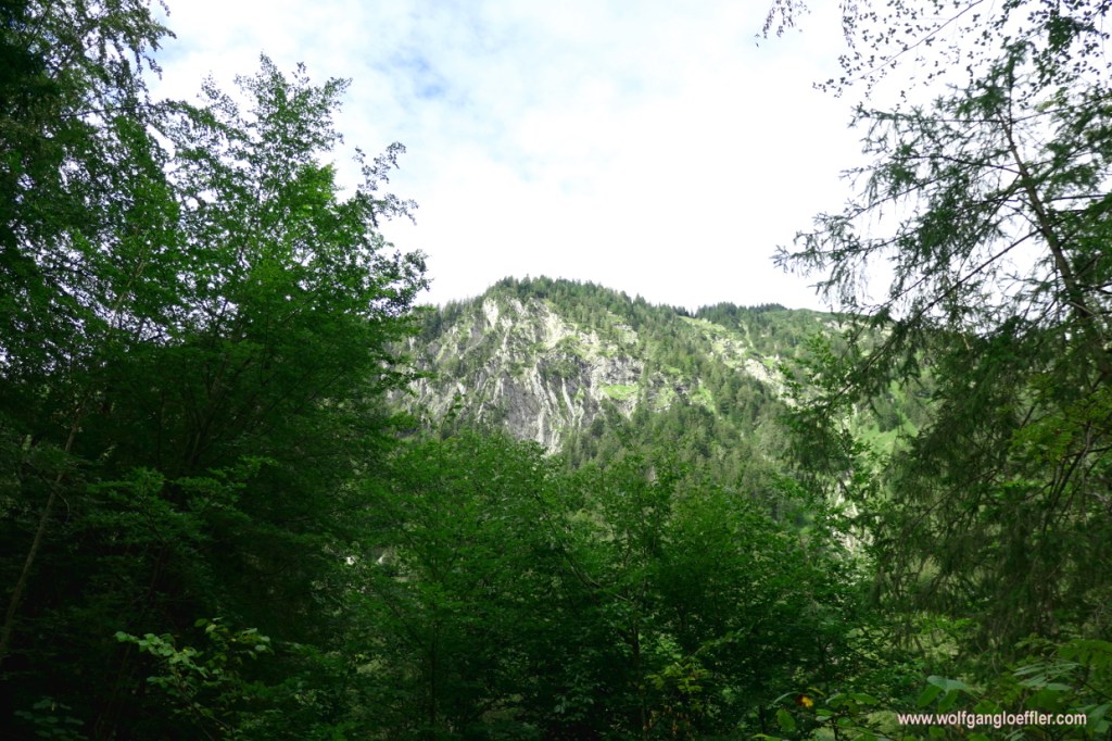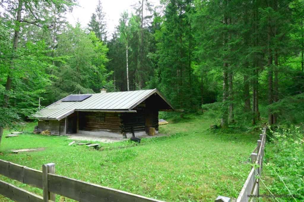 From here the route is leading along gravel roads. A few minutes down from the Bodenschneidalm follows the next cabin. At the Raineralm you can’t sit down for a drink but there is a sign that they sell their homemade cheese. I shortly reflect if I should by some but decide no to since I don’t want to carry the cheese through the summer heat. Just a few steps behind this cabin the trail leads back into a dense forest and falls a bit steeper downwards.