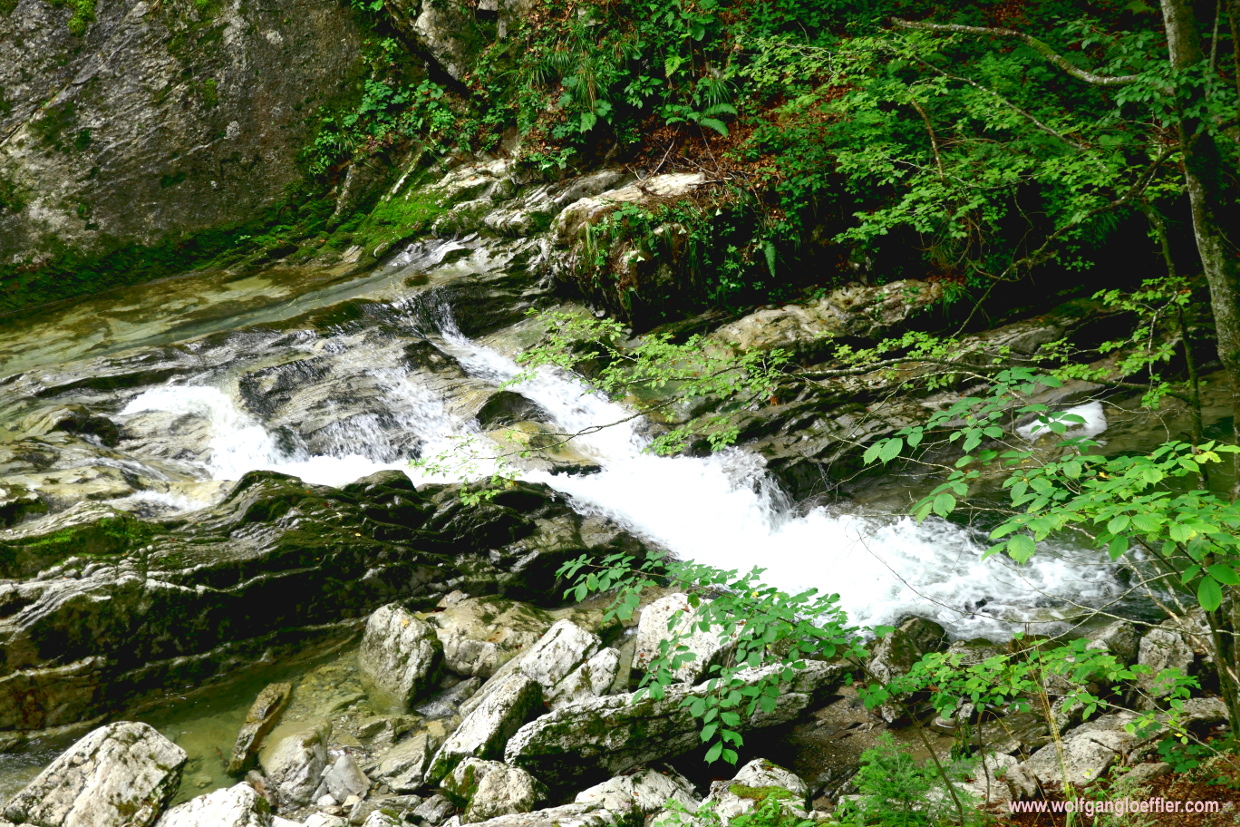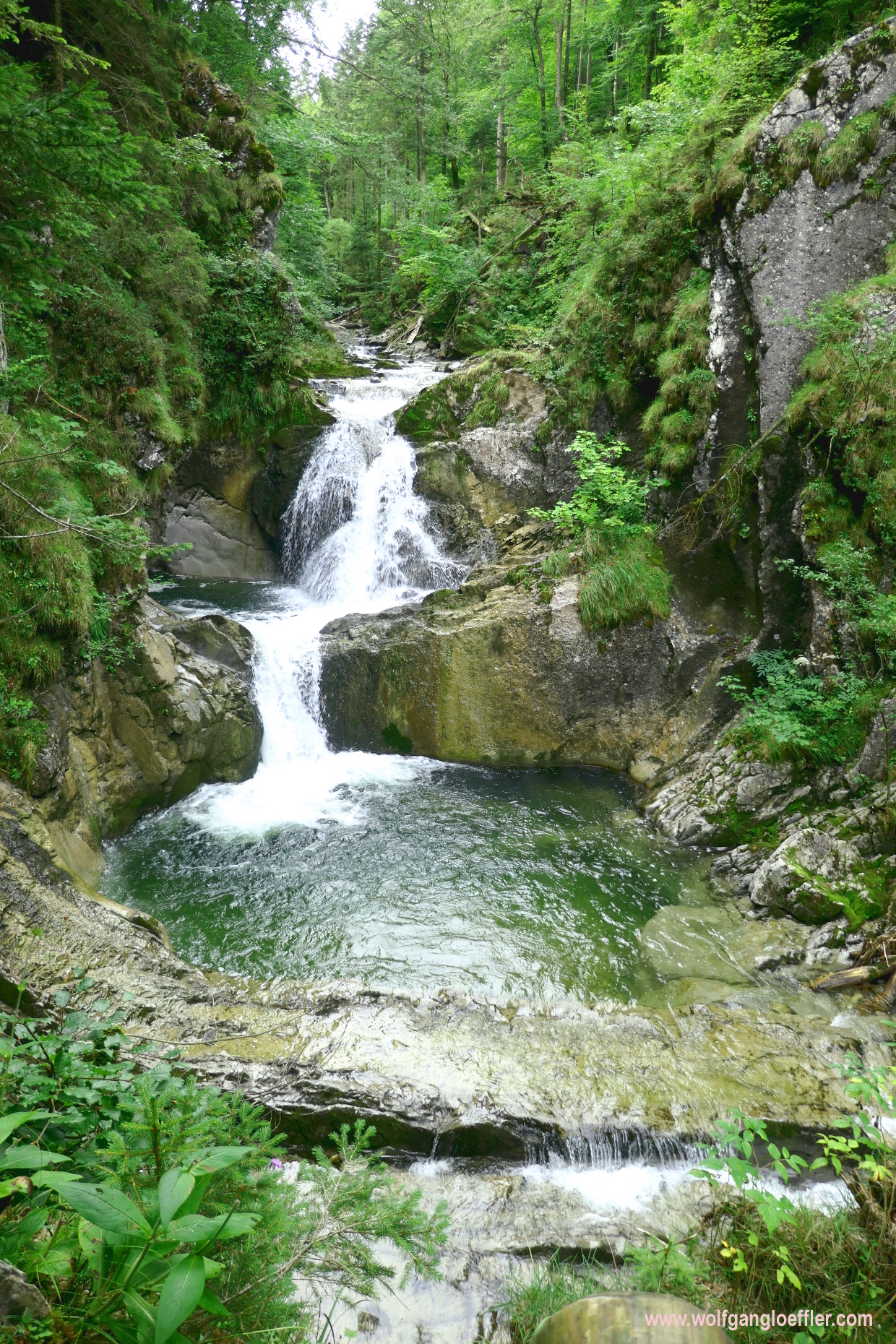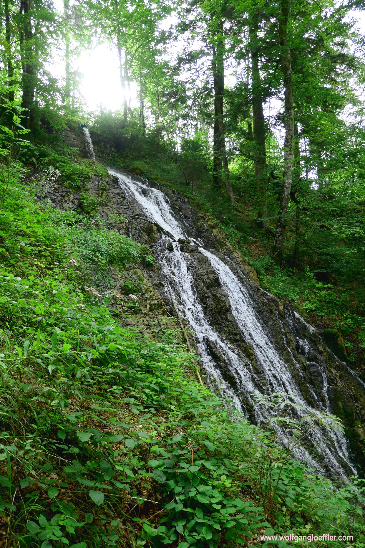 And sure enough I am greeted by a loud roaring. A staircase that is made of wooden steps leads me into a small gorge. To my left the first fall rustles down to the valley floor. Just a few minutes later I see the cascades of the big fall. What a beautiful place. So peaceful. I can imagine that these falls are a popular stop for sightseeing and guess that later in the day there will be more people around.
