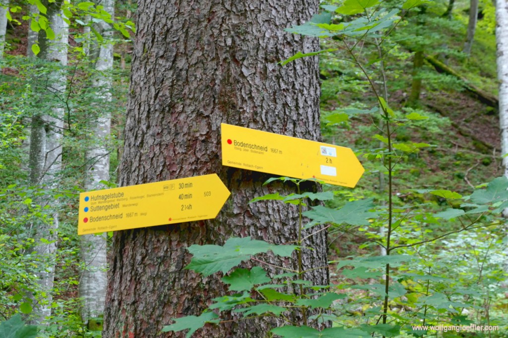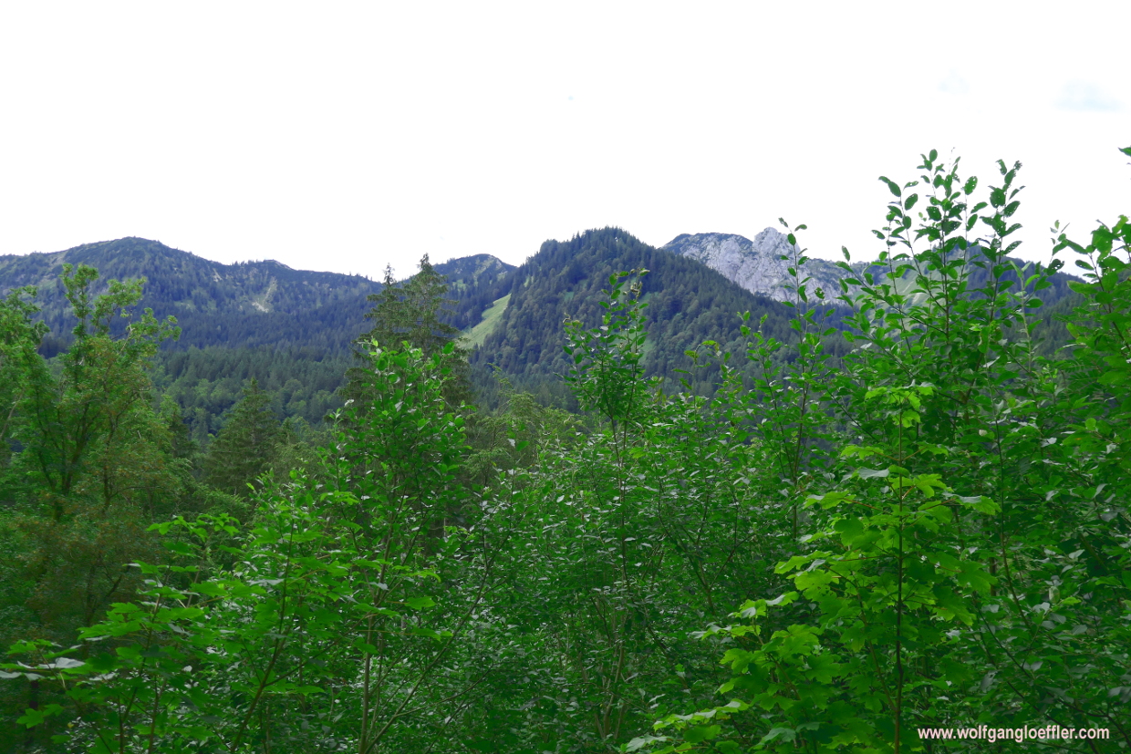 I am a bit confused since only Schliersee is mentionend on the signs. But I don’t want to go there today. A look on my map tells me that there has to be a turn to the Kühzaglalm and from there to Enterrottach. So I continue through the shades of the forest. And in fact just before I reach the road that I have taken from the Brecherspitze and Freudenreich Alp there is another road turning left. This is a forest road too and so the rest of my tour is more like an easy stroll.