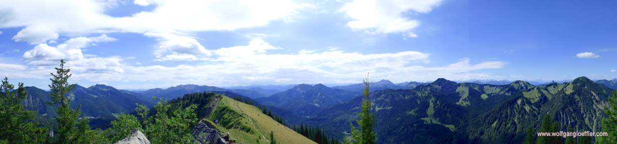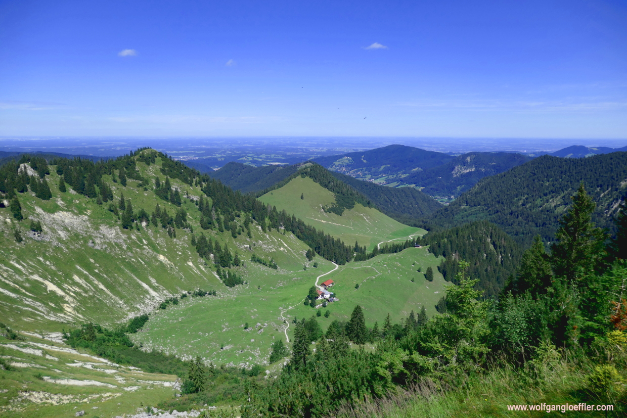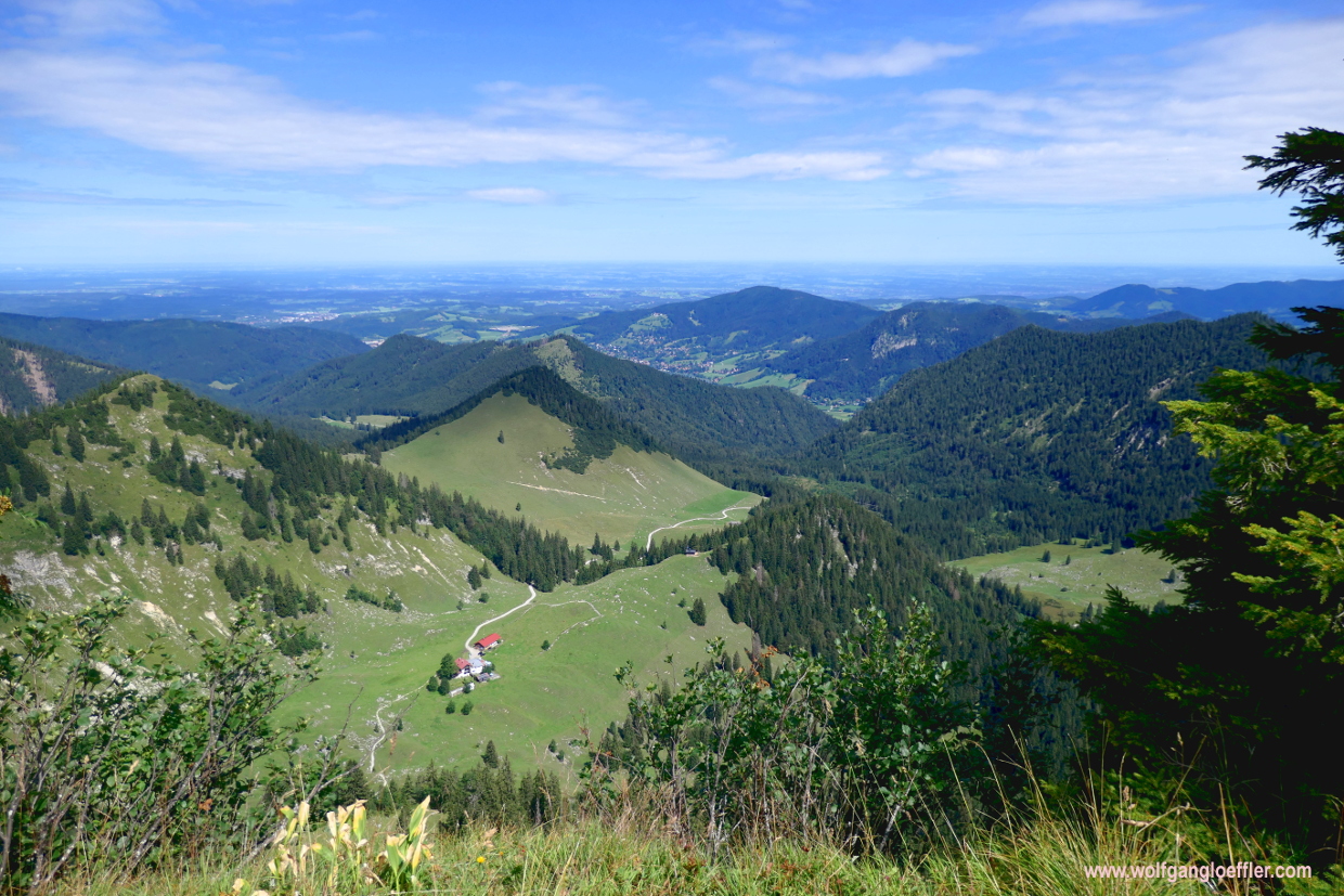 Behind the Bodenschneidalm I can see the Brecherspitze. I have climbed this peak last year. I can even make out the Freudenreich chapel. In the end I do find a space where I can sit down for a while and admire the view. Despite the crowd up here it is a great feeling to be on top of the mountain and look into the valley as always.
