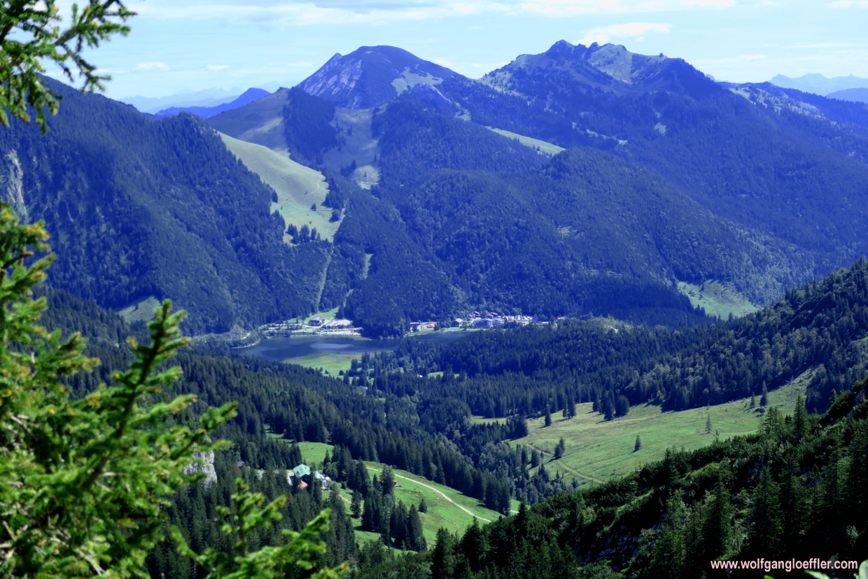 From Rottach-Egern the road leads a couple of miles into the valley direction Sutten skiing area. Next to the toll booth in Enterrottach is a parking lot from where you can start a tour to a summit with a great panoramic view right next to the Wallberg. Along your way you will pass the impressive falls of the Rottach and from the top of the mountain you will enjoy a fantastic view of the Tegernsee lake and the surrounding mountains. This tour is pretty easy to walk and you can do it even when you are afraid of heights. There aren’t any strechtes where you have to scramble over rocks. That means that you will encouter a few more people here.