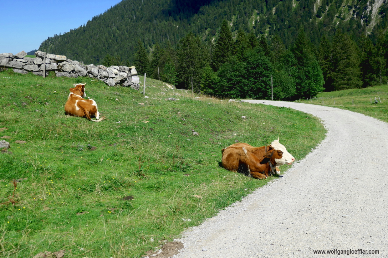The food is very tasty and allthough there are quite a few people taking a rest, there is enough space for social distancng. I could sit here forever. The cows that are grazing here are very curious and are looking jealously at my plate. „Hey, you’ve got fresh green gras in abundance here, so why do you want my food?“ Unfortunately I have to leave this place at one point. I still have a while to walk before returning to my car.