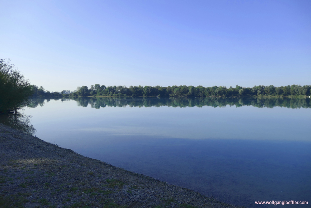 Soon I have left the nothern suburbs of Munich behind and reach the first sight along the route. The Regatta lake is an excavated lake and on its northern and western shores there are nice lawns with trees offering shade on a hot day. The southern part is a protected biotope. It’s fascinating to see that such a peaceful place exists just minutes away from downtown Munich. I have to admit though that this could be due to the fact that I am here early in the morning.
