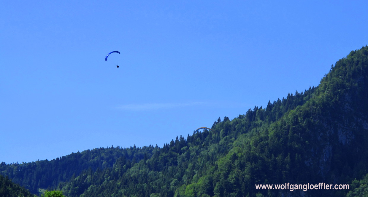 Gleitschirm, fliegen, Wald, Berg, Himmel, blau, wandern, Lenggries, Brauneck, Bayern, Alpen
